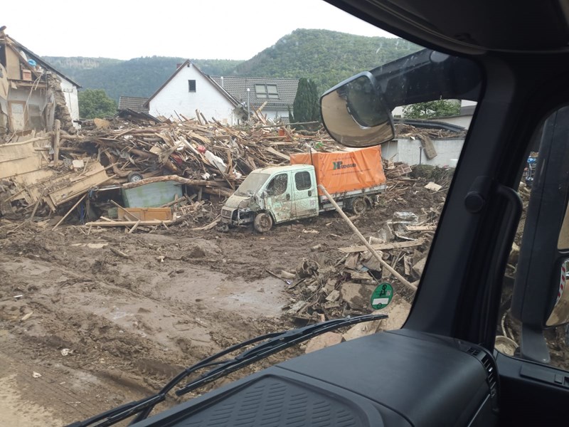 Krisen sind leider nicht nur Utopie: verheerende Auswirkungen der Hochwasser-Katastrophe im Sommer 2021, hier in der Eifel bei einem Hilfseinsatz der MITNETZ STROM