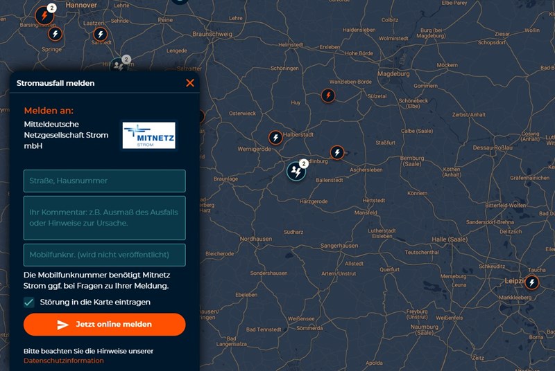 Die Kunden können ihre Störung auch schnell und bequem online melden. Dazu gibt es das auch von MITNETZ STROM initiierte und mittlerweile bundesweit genutzte Portal stromausfall.de. Kunden sparen sich damit den Anruf bei der in kritischen Situationen oft überlasteten Hotline. Auch wenn der Strom zu Hause ausfällt, kann der Service genutzt werden, weil in der Regel noch ein Mobiltelefon mit mobilem Internet zur Verfügung steht, auf dem die Meldung vorgenommen werden kann. Diese kommt dabei genauso zeitnah bei MITNETZ STROM an, als hätten die Kunden persönlich mit einem Mitarbeiter gesprochen. Gerade bei Großstörungen ist die Onlinemeldung die bessere Wahl für die Kunden, natürlich vorausgesetzt das mobile Internet funktioniert noch und das Smartphone ist aufgeladen.