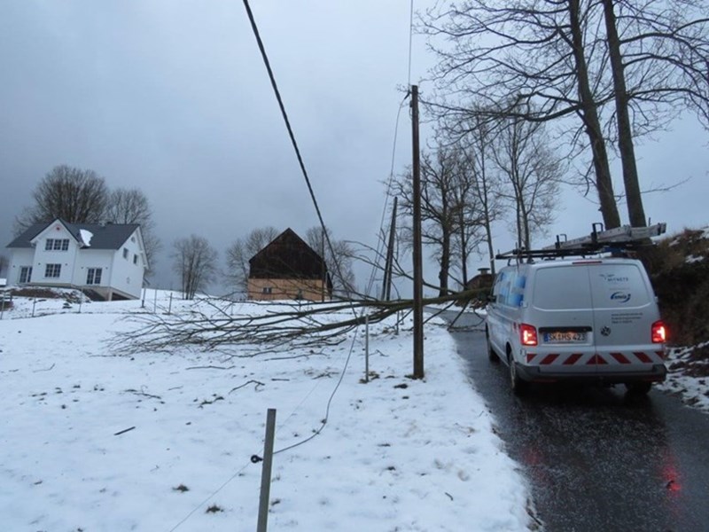 Nach jetzigem Kenntnisstand hatten wir allein in der Niederspannung 52 Störungseinsätze. Davon entfielen auf Sachsen-Anhalt 17, Südsachsen und Westsachsen jeweils 13 und Brandenburg 9 Störungen. Ursachen waren meist wetterbedingt gerissene Leiterseile/Binder, Äste oder Bäume in Freileitungen.