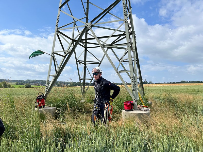 Um die Sicherheit aller Beteiligten zu gewährleisten, mussten zunächst die Leiterseile auf einer Seite des Mastes von der MITNETZ STROM Leitstelle in Taucha spannungslos geschaltet und von den Monteuren zur Sicherheit geerdet werden. Erst dann konnte der Jungvogel gefahrlos aus seinem Nest geholt werden. Dazu setzten die Spezialmonteure den Jungvogel, der noch einige Wochen braucht, um flügge zu werden, behutsam in einen Stoffsack und seilten ihn vom Mast ab.
