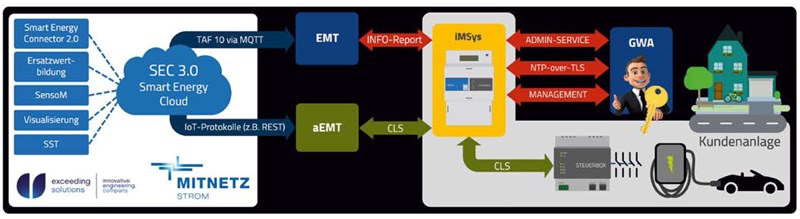 Das Modul des „aktiven externen Marktteilnehmers“ (aEMT) ermöglicht den Aufbau eins Kommunikationskanals zwischen dem aEMT und dem Smart Meter Gateway sowie weiteren dahinter liegenden Geräten an der CLS-Schnittstelle. Die beiden Partner-Unternehmen wollen gemeinsam die anspruchsvolle Zertifizierung erhalten. „So wird sichergestellt, dass die Software die Informationssicherheits-Richtlinien einhält sowie Fehler- und Meldeprozesse beim Betreiber etabliert“, erklärt Beatrice Schnelle, Leiterin der Abteilung Smart Meter Gateway Administration bei MITNETZ STROM.